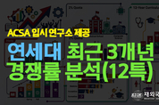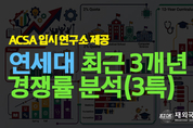 재외국민교육정보 | ACSA 입시 연구소 전체 지원 흐름 3년 특례는 2024년 493명, 2025년 499명, 2026년 529명으로 증가했다. 모집 인원도 69명에서 71명으로 조금 늘었지만, 지원 증가 폭이 더 커서 2026년에 전체 경쟁률이 다시 7.45:1로 올라섰다. 즉, 3년 특례는 “폭발적 상승”보다는 안정적인 고경쟁 유지 + 2026 재상승 패턴이라 할 수 있다. 2027년도 입시가 고민이라면? 지금 바로 상담신청! 상담 신청 바로가기 가장 경쟁이 치열하거나 선호도가 높은 전공 3년 특례에서 가장 눈에 띄는 축은 역시 의예과, 치의예과, 약학과이다. 2024년 의예과는 15.00:1, 치의예과는 11.50:1, 약학과는 13.00:1이었고, 2025년에는 치의예과와 생명시스템대학이 16.00:1까지 올라갔다. 2026년에도 의예과 11.50:1, 약학과 9.00:1로 여전히 상위권이다. 절대 지원 인원 기준으로 봐도 의예과는 30명, 30명, 23명으로 꾸준히 강세이다. 그다음으로는 경영학과, 전기전자공학부, 상경계열, 첨단컴퓨팅/컴퓨터과학 계열이 강세를 보인다. 3년 특례에서 경영학과는 36명, 32명, 30명으로 꾸준히 많았고, 전기전자공