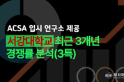 재외국민교육정보 | ACSA 입시 연구소 성균관대학교의 재외국민(정원 외 2%) 전형은 재외국민(3년) 표기로 제공되고 있어, 이번 자료는 해당 기준으로 최근 3개년 흐름을 정리했다. 특히 성균관대 공개 자료는 대부분 모집단위의 개별 경쟁률이 아니라 묶음 경쟁률을 제시한다는 점이 핵심이다. 2024년과 2025년은 인문계·자연계 묶음, 2026년은 의예과·약학과를 제외한 19개 모집단위 묶음 경쟁률이 반복 적용된다. 따라서 아래 분석은 모집단위별 지원인원과 공개 경쟁률을 함께 읽는 방식으로 해석해야 한다. 총계 기준으로 보면 2024년 68명 모집 / 710명 지원 / 10.44:1, 2025년 70명 모집 / 740명 지원 / 10.57:1, 2026년 71명 모집 / 770명 지원 / 10.85:1로 상승했다. 즉 성균관대 3년 특례는 최근 3년간 총 지원자 수와 전체 경쟁률이 모두 완만하게 우상향했고, 2027학년도 역시 현재 구조가 유지된다면 이 상승 흐름이 쉽게 꺾이진 않을 가능성이 크다. 2027년도 입시가 고민이라면? 지금 바로 상담신청! 상담 신청 바로가기 재외국민(정원외2%)전형에서 가장 강한 축 가장 높은 경쟁률은 최근 3년 내내 의예과와