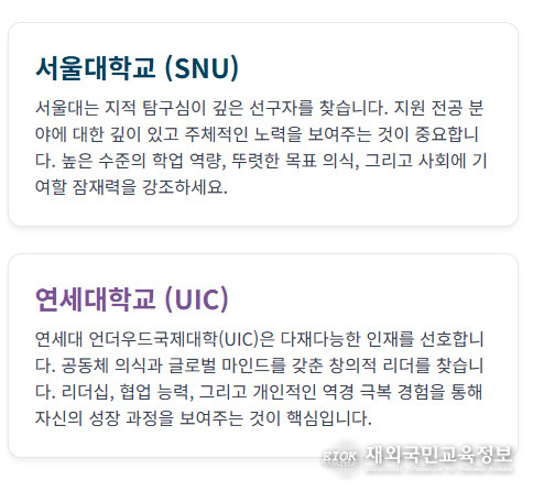 [카드뉴스] 연세대 서울대의 자기소개서 작성 비교