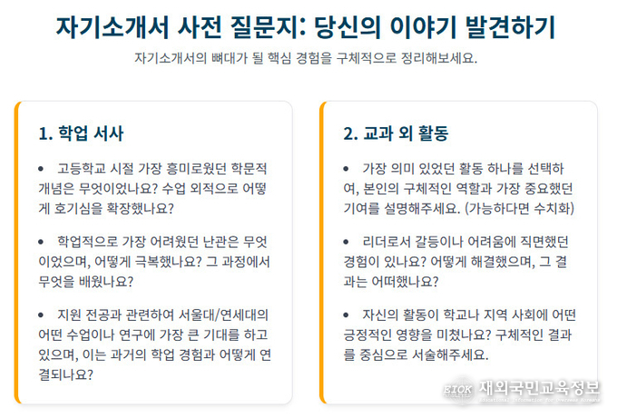 2.1 학업 서사: 지적 여정과 전공 준비도 (서울대 및 연세대 1번 문항 기초)