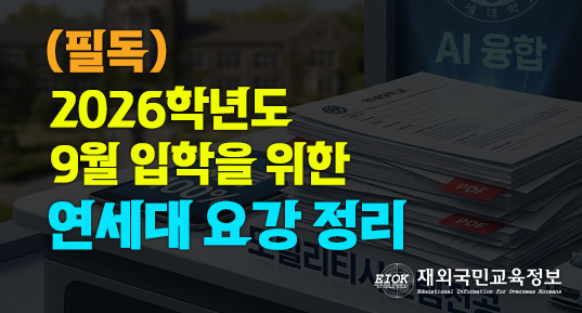 연세대학교, 2026학년도 9월 후기 재외국민 전형 모집요강 발표… '서류 100%' 일괄 선발 및 인공지능융합대학 신설 전공 주목